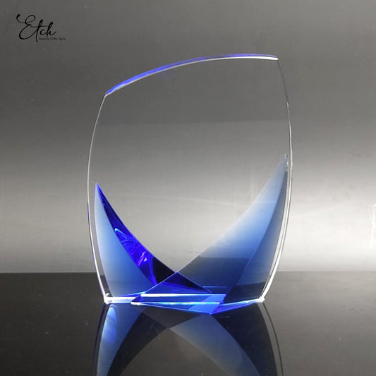 Crystal Curved Award with Blue Gradient Base