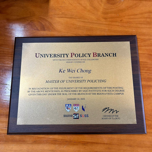 Certificate metal print mounted on Wooden Plaque
