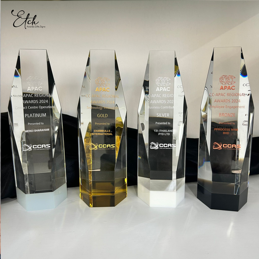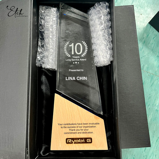 Our company specializes in providing personalized awards and gifts for individuals, businesses and organizations. We understand the importance of recognizing and rewarding employees, clients, and partners, and we work closely with our clients to create unique and meaningful gifts that reflect their brand and values. Whether it's a custom-engraved crystal plaque for a sales team, a personalized wooden safekeep, or a wedding signage, we have a wide range of options to choose from and can accommodate any budget. We pride ourselves on our attention to detail, fast turnaround times, and excellent customer service. Let us help you make your next awards or gifts presentation truly special.